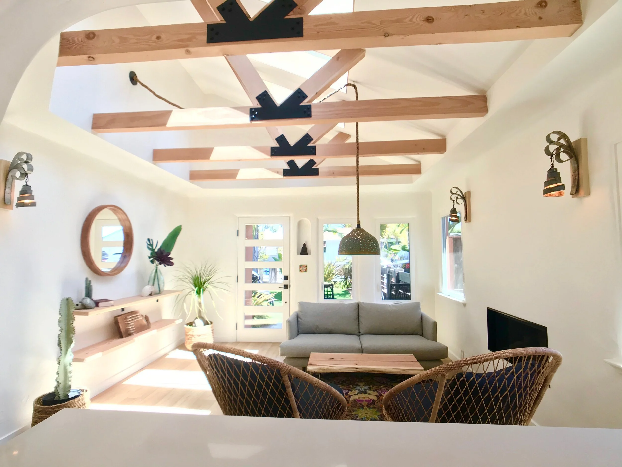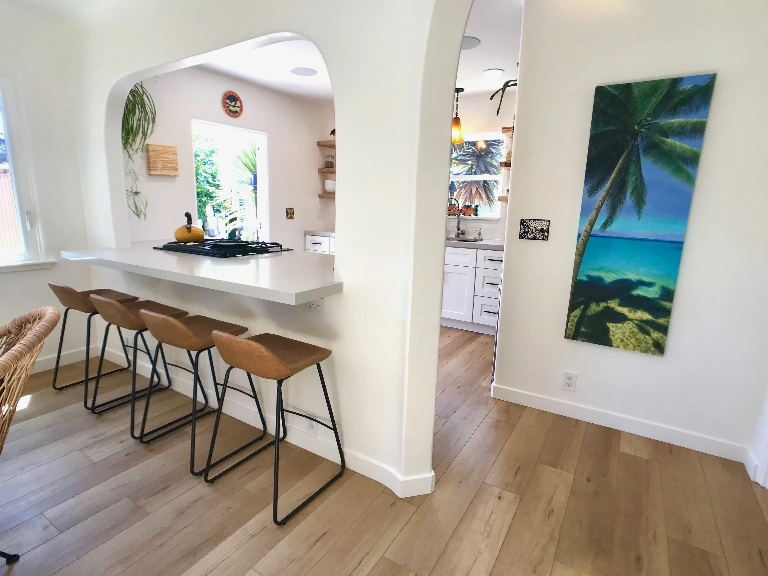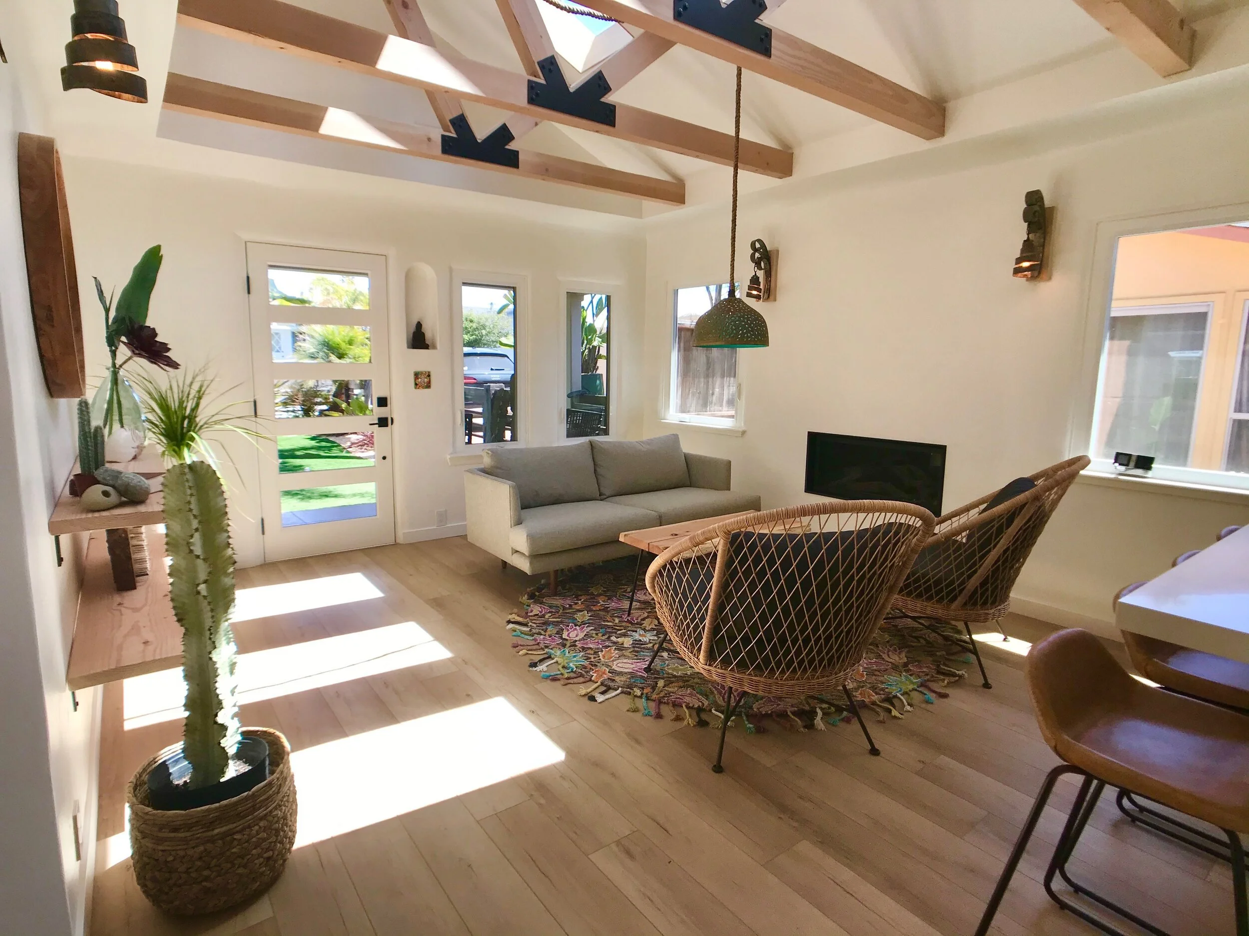 This completely remodeled home with a new addition sits on a flat and sunny landscaped 5,009 square foot lot with a newly built trex deck overlooking gardens of tropic foliage. It is located on one of the best streets on Pleasure Point and is close to shopping, schools and restaurants. This two-bedroom home offers many possibilities for casual family living, or it could also be a great entertainment house. The open floor plan features hardwood floors and a beach bungalow vibe. The kitchen features custom wood cabinets with all new built-in cabinets. The kitchen revolves around a 3-chair bar. When you aren't sitting at the island bar having breakfast, you can serve gourmet meal or relax on the 400+ square foot deck with a meal on the grill. The living room features a gas fireplace with a live edge solid walnut mantle. The vaulted-ceiling master bedroom offers garden views and that cottage feel. If you like outdoor living, you will love this home! The large deck, meticulously manicured front yard, and beautifully landscape backyard with fruit trees and an oasis of banana plants gives you a private get-away. The backyard gets the perfect combination of sun and shade.